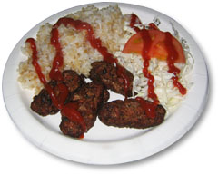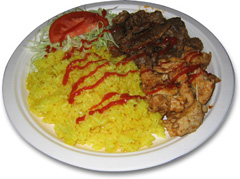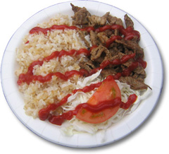 スパイシーなエジプト風味のケバブに新鮮野菜、ご飯がタップリのケバブ・ハラー。