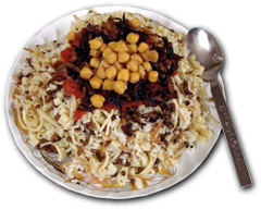 マカロニ、スパゲティ、ご飯、レンズ豆、ヒヨコ豆etc.の入った、言わばエジプト風ミートスパゲィ・ライス!?